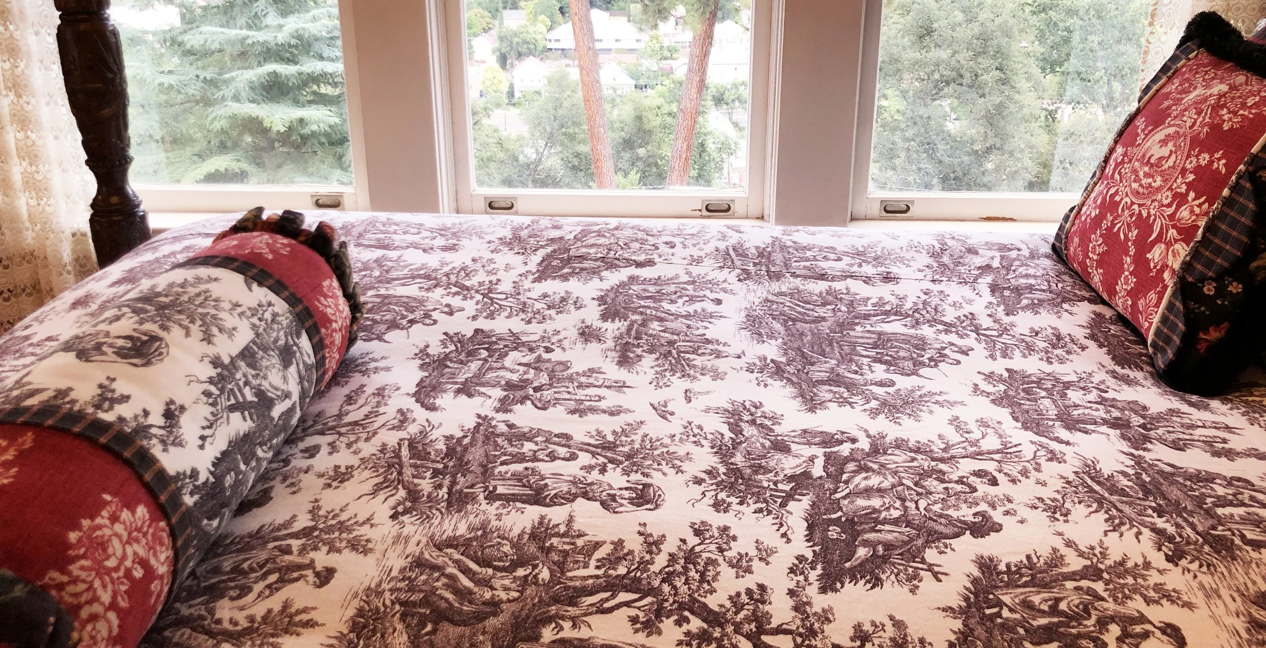 Soft florals and views of our Heritage Oak evoke a cozy treehouse feel.